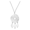 Erlebe die Kraft des Traumfängers mit dieser beeindruckenden Halskette. Der detailreiche Anhänger mit funkelnden Steinen und filigranen Blättern steht für gute Träume und positive Energien, die dich stets begleiten.
